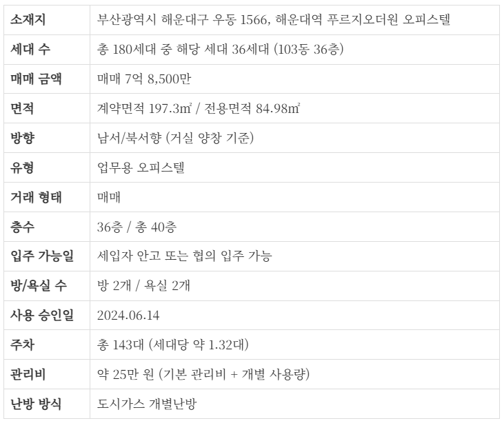 해운대역 푸르지오더원 오피스텔 84A타입