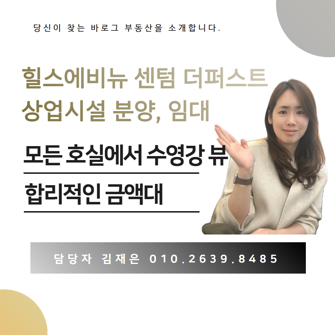 | 수영강뷰 대형 평형 상가 분양 · 임대 신축 무권리 ㅣ 힐스에비뉴 센텀 더퍼스트 (2) | 2025.08.18 |